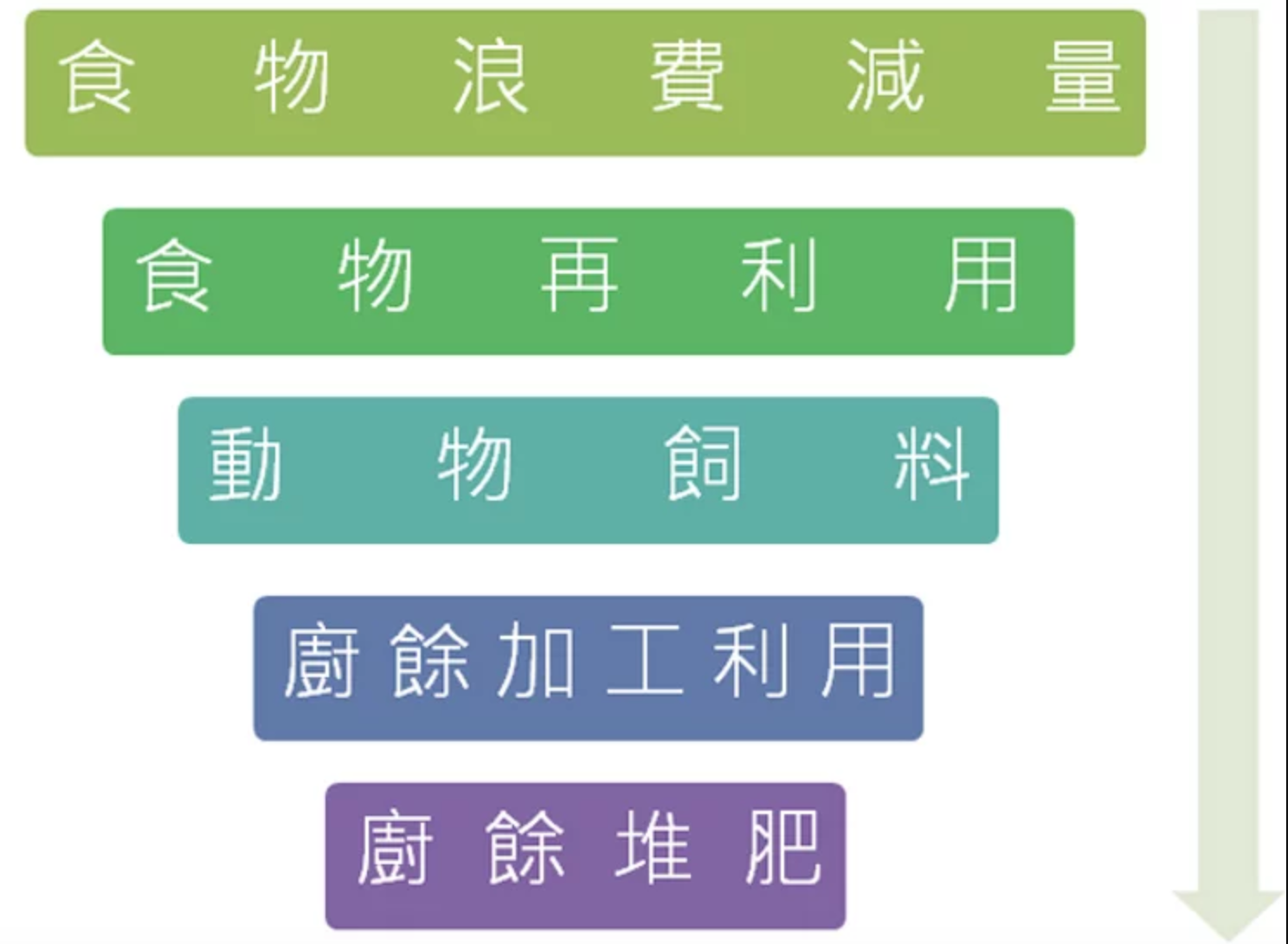「經濟合作暨開發組織(OECD)」在一份農業政策與市場報告中,曾詳細說明淘汰食物的多元再利用方式。報告認為應優先考慮的處理方式,第一是「減量」,從源頭開始減少可能的食物浪費。第二是「食物再利用」,將食物透過食物銀行等方式,重新分配給需要的人。第三是加工為動物飼料,第四是廚餘加工利用,例如沼氣發電、廢油回收等。最後,無法做更高利用價值時,就可以規劃堆肥。