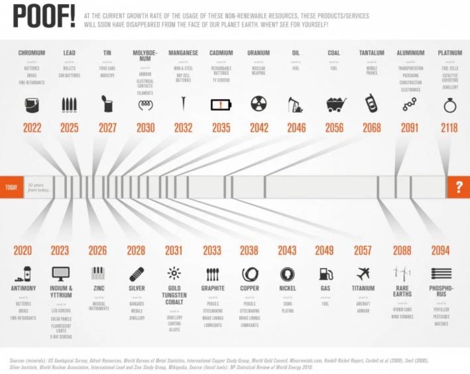 聯合國環境計畫(U.N. Environmental Program)於 2010年發表的調查報告指出,目前科技產品中使用的稀有金屬回收率低,可能在未來20年內就會耗盡。而據估計,由手機電路板中可提煉出的黃金量(每噸約150克),要比由含金礦石處理所得到的金量(每噸約5克)要高出將近30倍。