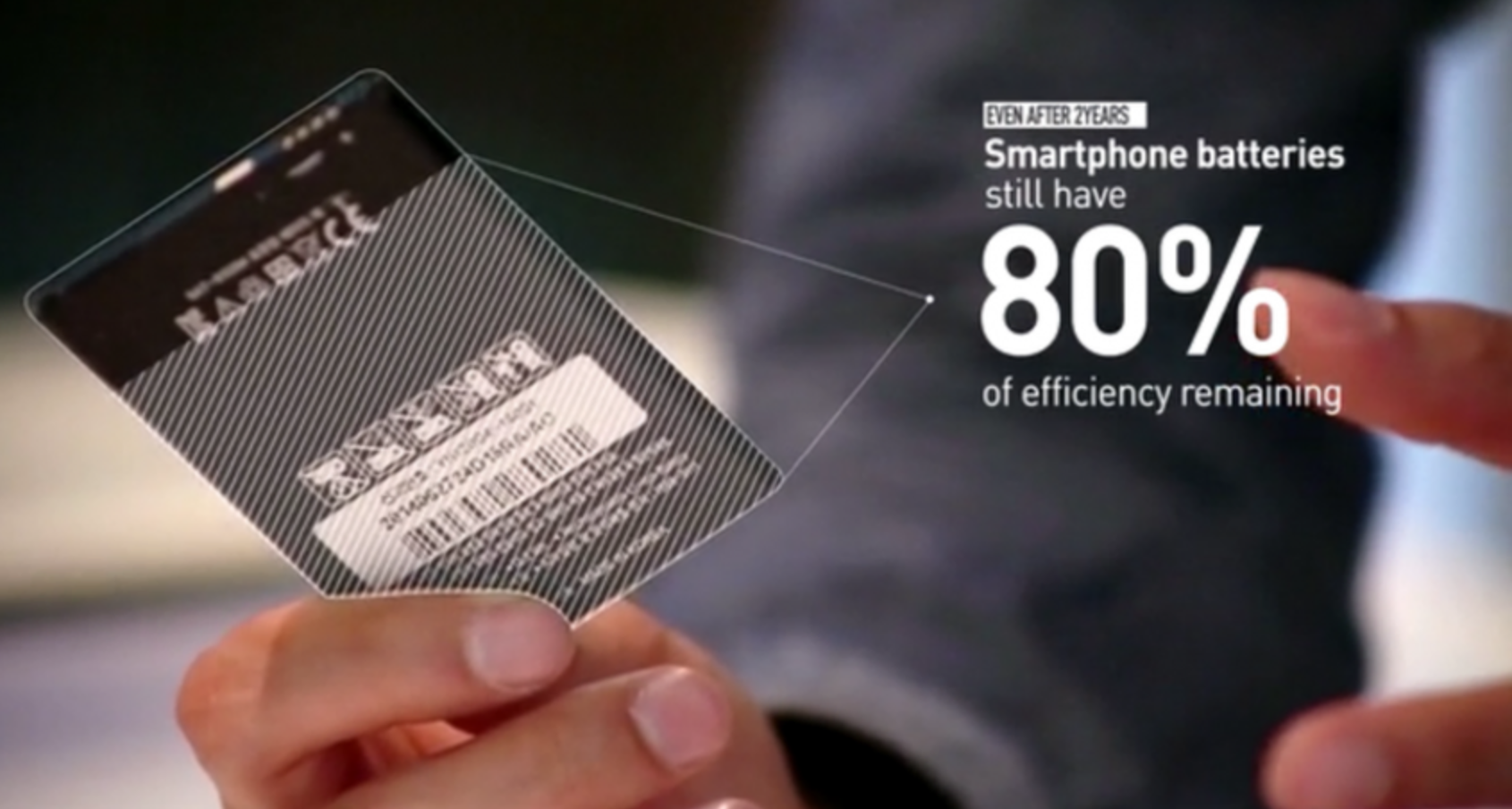 「智慧型手機使用的鋰離子電池是品質最好的電池,使用兩年之後,通常都還有80%的效能。只要沒有外部損傷,這些電池都還可以繼續使用,是非常好的資源。」