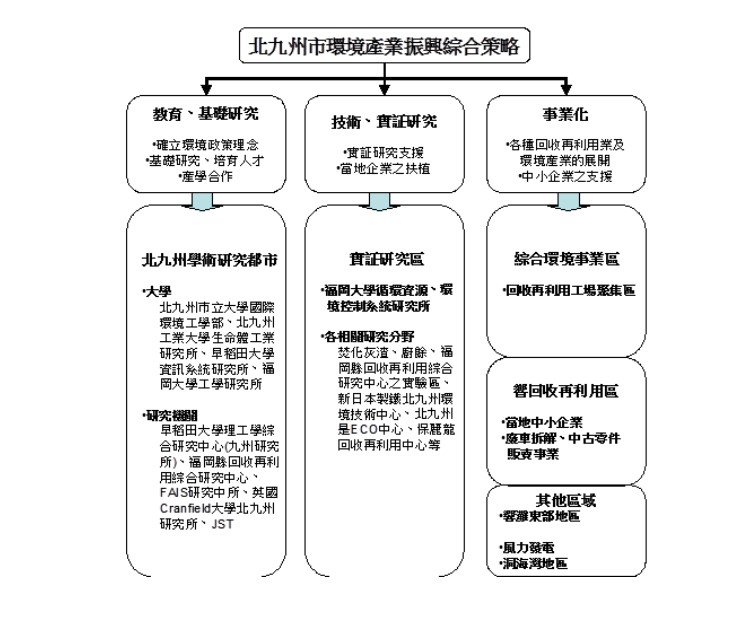 但是高度的工業發展,也帶來嚴重的工業污染,讓整個城市付出經濟發展的沉重代價,隨著1980年代產業衰退,1997年北九州生態工業園區計畫通過日本經濟產業省與環境省核定,也是第一個通過此計畫的園區。北九州生態工業園區主要發展目標為:技術、人才和Know-How,以資源回收為中心發展成環保事業,並達成以環境與回收產業為主軸的地區發展。