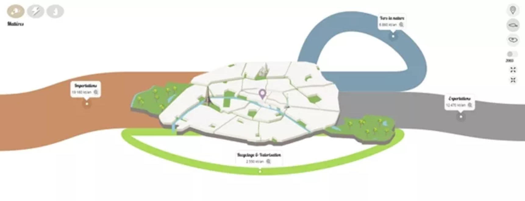 如何吸引市民目光及關注、邀請市民參與循環經濟,與市民的溝通術自然也是巴黎市政府的重點功課。巴黎市政府在2014年推出「城市代謝」(Urban Metabolism)線上平台,透過視覺化的方式,邀請市民一同來探索城市的新陳代謝。