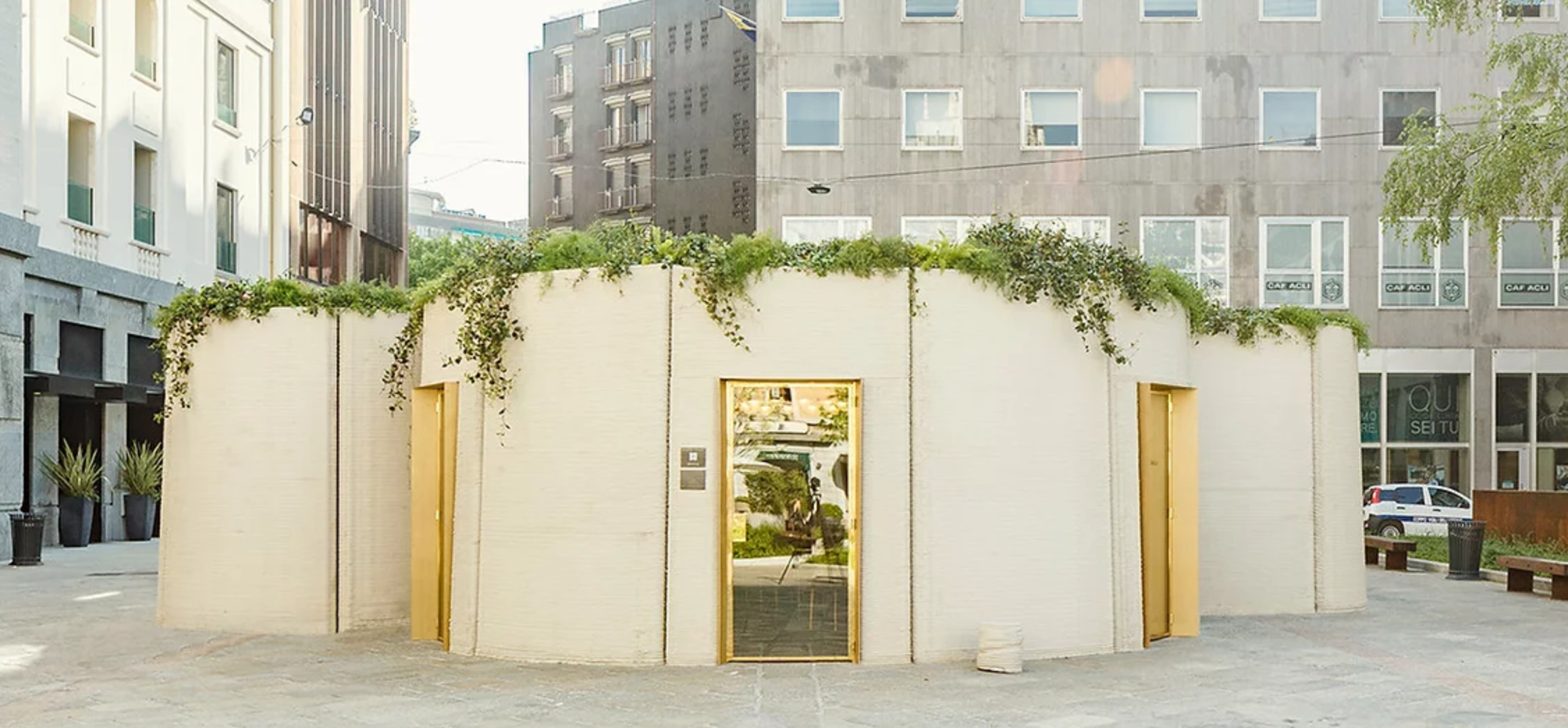義大利建築公司CLS Architects 與英國工程顧問公司 Arup、水泥與建材公司 Italcementi 合作,利用一台具有 3D 列印機器手臂安裝在可移動的機臺上,在短短 48 小時內就在米蘭設計周的現場「印出」 35 個建材模組,蓋出了一棟佔地一百平方公尺的水泥建築(影片與說明),客廳、臥房、浴室與廚房一應俱全。這項 3D 列印技術除了可以使用回收水泥作為材料,還能將使用後模組拆卸下來重新組裝,以減少水泥用量。
