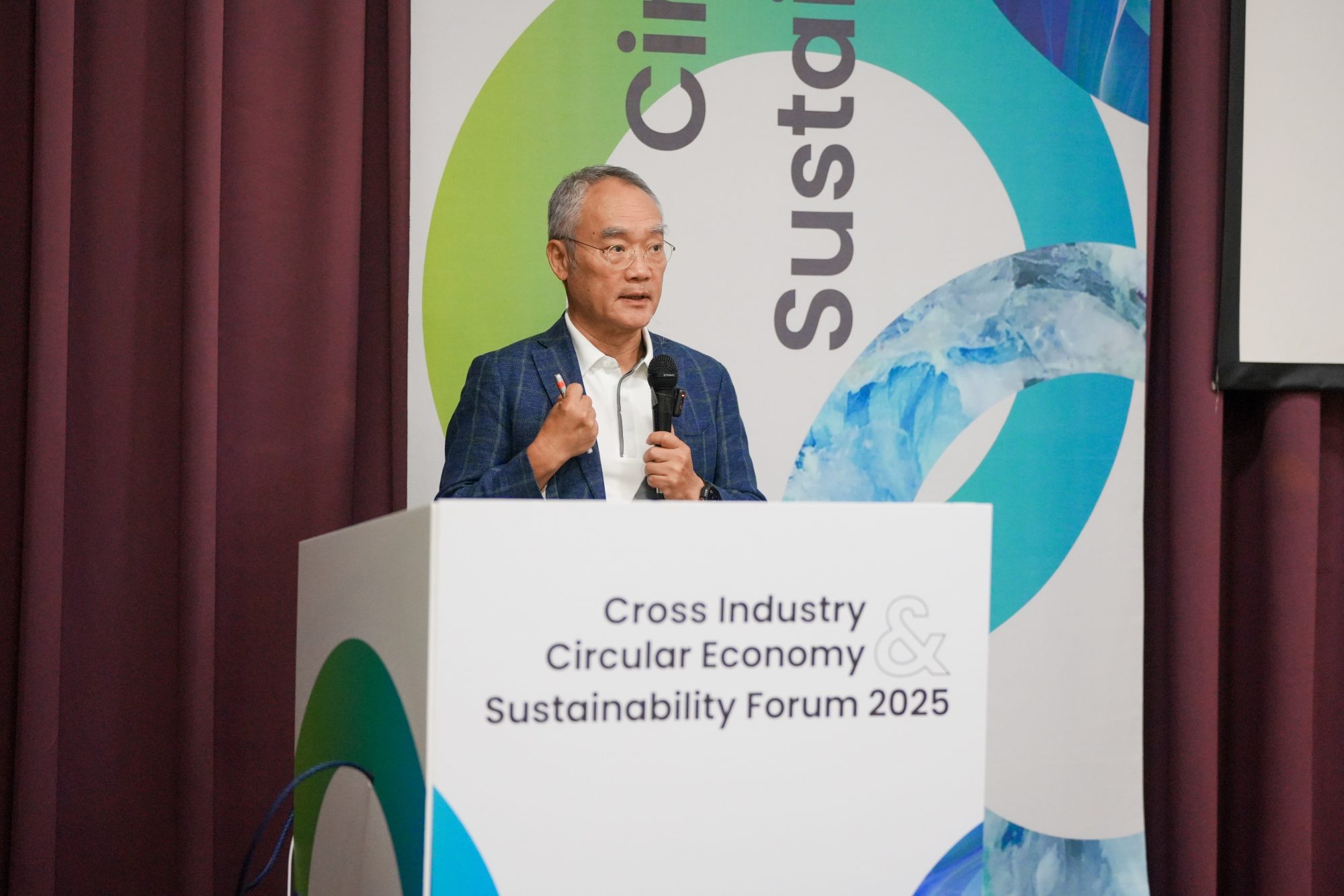 在論壇中,循環台灣基金會董事長黃育徵以「Go Circular; Now & Together」為題,提出對產業轉型的深刻觀察。他直言,全球過去三十年減碳成效有限,僅靠單一產業或國家難以應對氣候危機。唯有推動 CC4CC(Circular Collaboration for Climate Crisis),透過跨產業、跨國界的協作,才能打造真正具韌性的永續生態系。