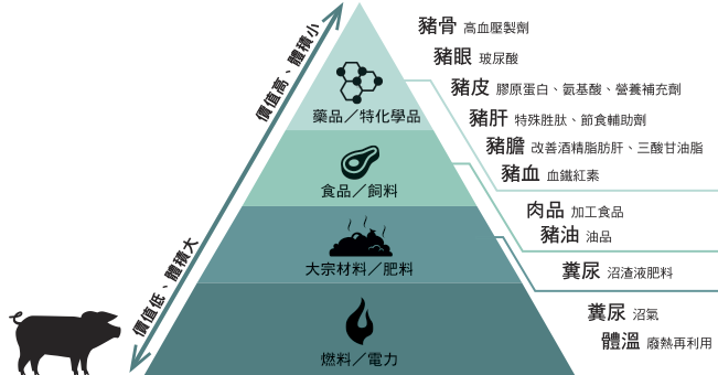 - 生物循環:透過生物質價值金字塔(Biomass Value Pyramid)的原則來規劃資源使用的方式